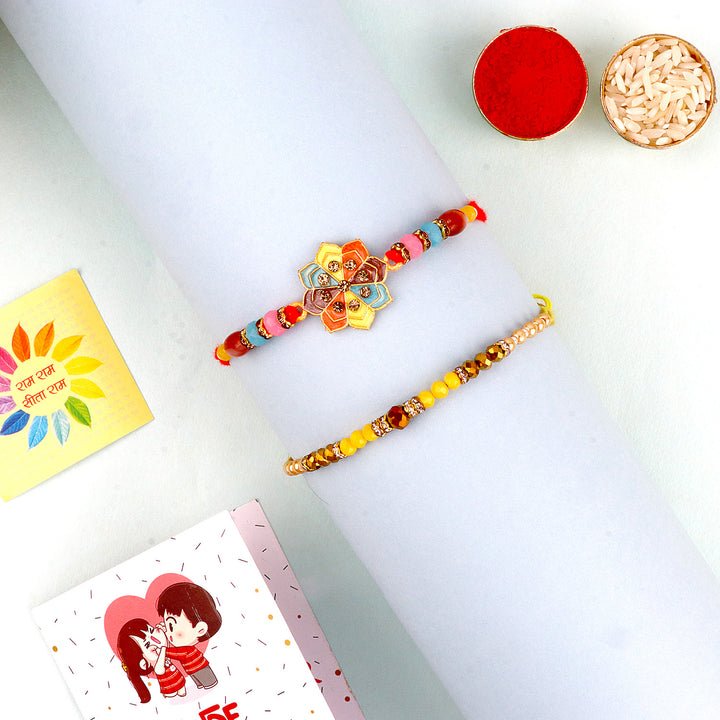 Charming Beaded Om Bhaiya Rakhi Set of 2