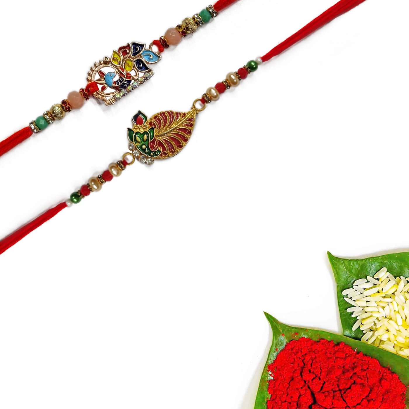 Padmabuja Peacock and Leaf Ganesha Rakhi set of 2